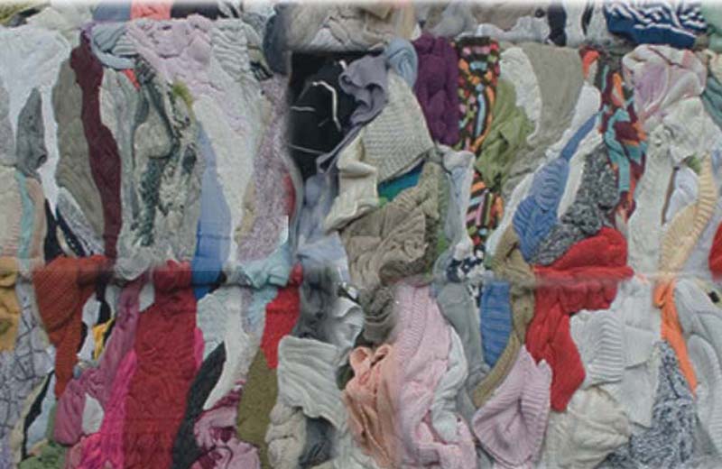 O tecido da roupa usada é desfiado e depois purificado com corantes e outros produtos.