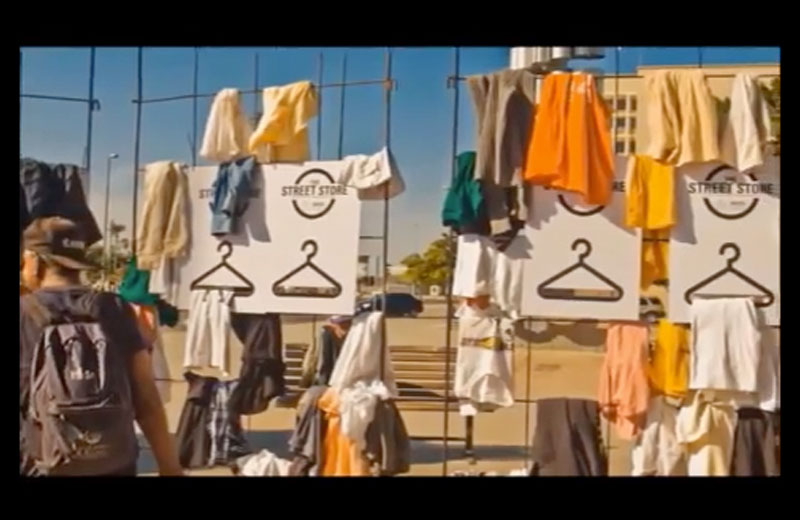 A primeira loja de rua gratuita para moradores de rua rendeu frutos e a ideia se espalhou pelo mundo, para mais de 150 países. (vídeos abaixo)