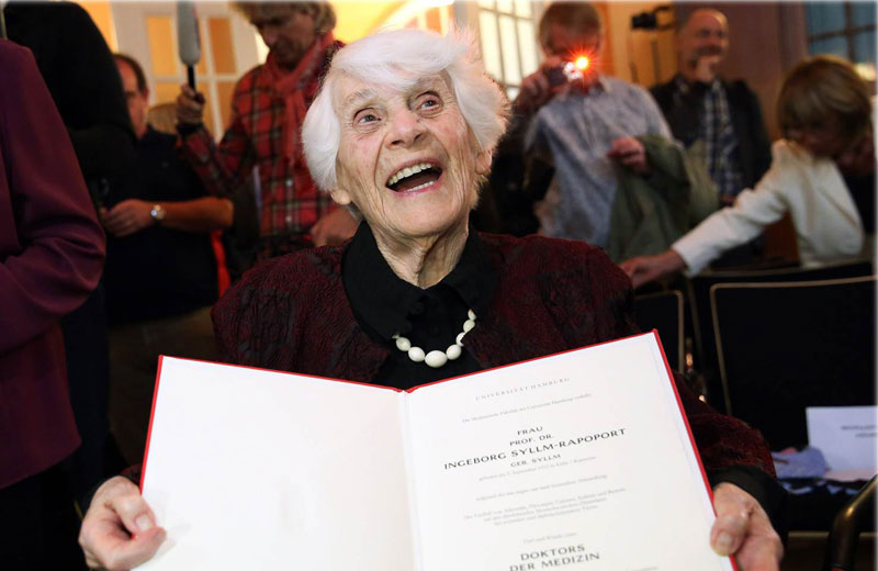 Aos 102 anos de idade, a alemã Ingeborg Rapoport recebeu o título de doutorado, que lhe foi negado pelos nazistas pelo fato de ela ser judia.