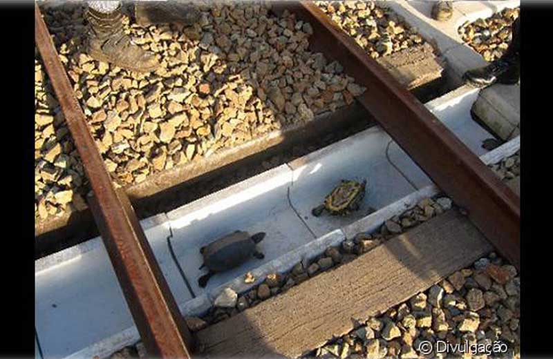Algumas empresas ferroviárias do Japão estão fazendo túneis debaixo dos trilhos para salvar pequenas tartarugas e também evitar danos nas rodas dos trens.