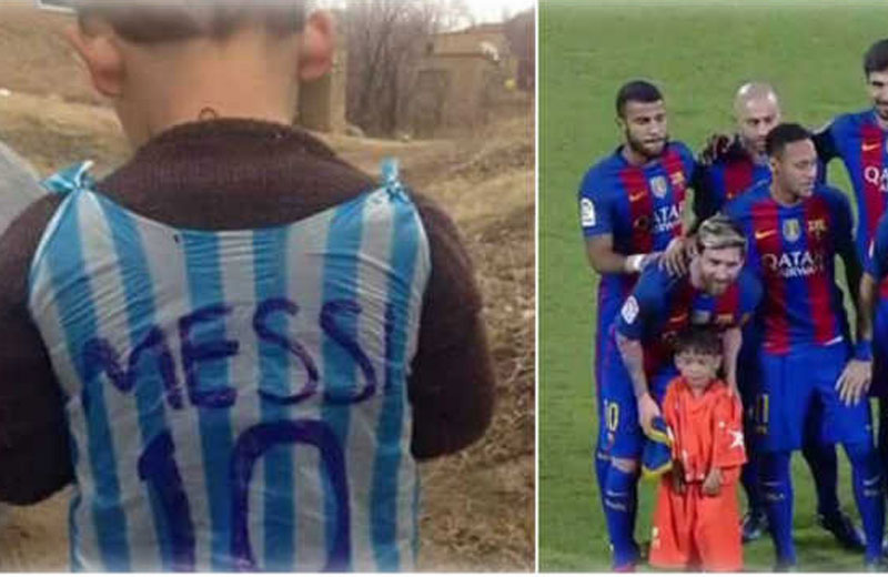Sonho realizado! O menino de 6 anos que fez uma camisa de Messi com sacola plástica e comoveu o mundo em fevereiro, finalmente conheceu seu ídolo.