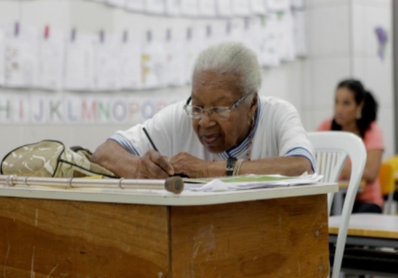 SALVADOR-BA: A sede de aprender é tanta que uma vovó de quase 100 anos – mais velha da rede municipal de Salvador – é a melhor aluna da tuma e a mais pontual.
