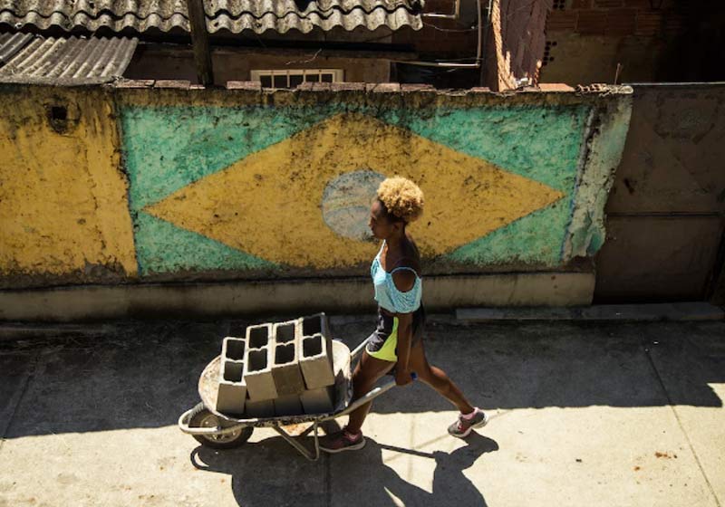 Fotos das alunas transportando blocos e sacos de cimento pelas ruas estreitas da favela mostram o progresso da obra. (Fotos abaixo) Elas estão sendo postadas no Instagram pela bailarina brasileira Tuany Nascimento, que fundou o projeto Na Ponta dos Pés.