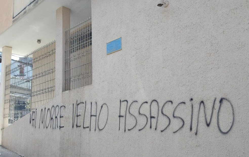 No bairro de Dois de Julho, a situação dividiu opiniões de moradores, que falaram sobre o comportamento dele. Uns, apontaram que ele tinha um histórico de comportamento agressivo, outros diziam que ele parecia inofensivo. Prédio de idoso que matou homem a tiros na BA foi vandalizado — Foto: Arquivo pessoal