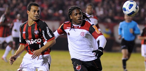 | Wendell e Diego Maurício disputam a bola no empate entre Atlético-PR e Flamengo |