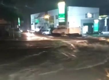 VITORIA DA CONQUISTA-BA: Forte chuva alaga ruas e invade casas