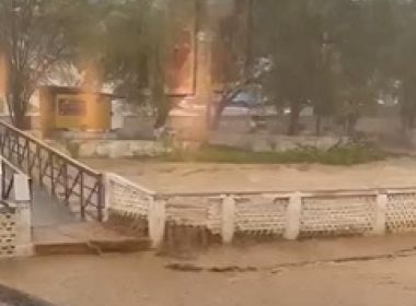 JAGUAQUARA-BA: Água da chuva alaga ruas e invade casas e lojas do comércio