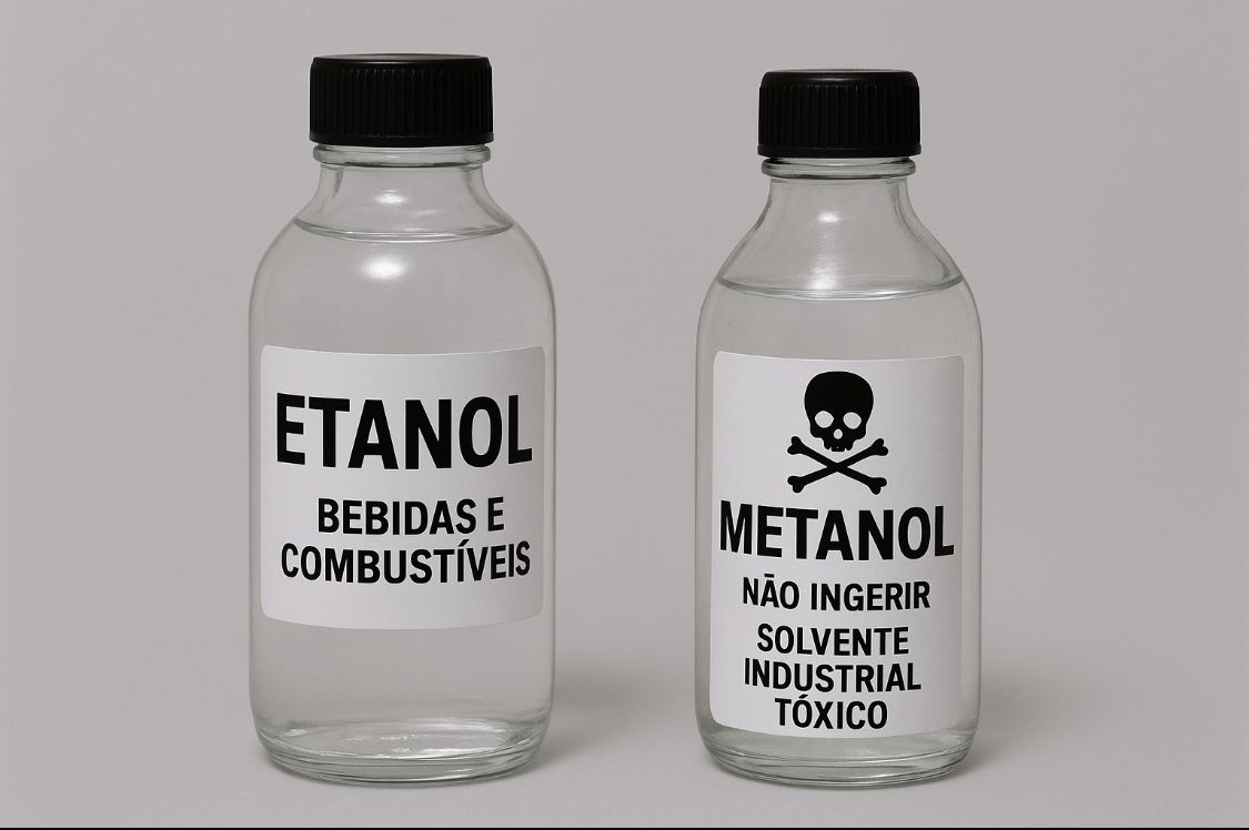 Enquanto o etanol é metabolizado em substâncias que o organismo consegue processar, o metanol gera compostos altamente tóxicos.